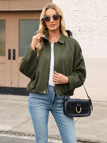 Womens Bomber Jacket Faux Suede Casual Cropped Pilot Coat Lapel Collar Causal Oversized Trendy Outwear