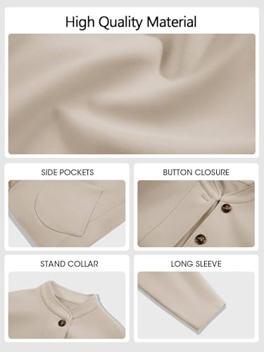 Tankaneo Womens Short Pea Coats Oversized Long Sleeve Button Down Casual Bomber Jackets with Pockets