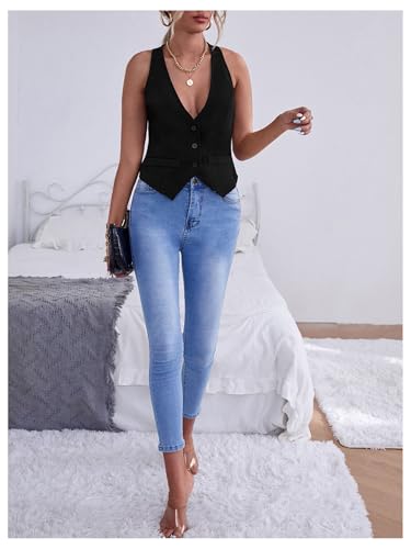 More information about MakeMeChic Women's Sleeveless Blazer Vest Button Up Split Hem Work Bussiness Jacket