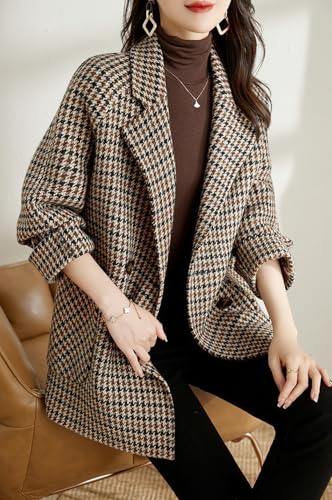 Fabric type: Fabric: Wool, PolyesterCare instructions: Recommend hand wash or dry cleanOrigin: ImportedSize Guide: XS=US 0-2, S=US 4-6, M=US 8-10, L= US 12-14, XL=US 16-18, XXL=US 20-22. Last picture is the size chart, if you are not sure about the size, please contact us without hesitation.Fall tweed blazer jacket for women featuring plaid & houndstooth pattern, basic notch lapel collar, long sleeve, open front button down placket, mid thigh length.The business casual womens blazer wool coat is made of superior and soft wool blend material, offering a one-of-a-kind texture and adds a touch of elegance to your wardrobe, which is comfy and warm to wear in early spring, fall and winter.Crafted from soft fabric. The trendy midi long wool pea coat for women combines professionalism and comfort, allowing you to transition from work to after-work activities with ease.Wear these wram fall winter coat for women open front for a casual vibe. The womens jackets are perfect for office, work, business occasions, interview outfits, vacation, party, street, going out, holiday, hanging out with friends, festival and more. Perfect for everyday use. High quality materials and excellent craftsmanship ensure long-lasting durability.