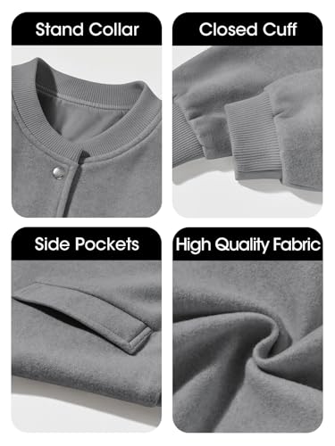 Tankaneo Womens Cropped Bomber Jacket Wool Blend Varsity Short Pea Coats Long Sleeve Button Down Winter Casual Outerwear