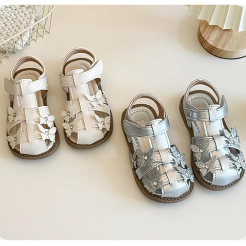 Origin: ImportedSole material: RubberOuter material: LeatherClosure type: Hook & LoopAdorable Flower Girl Sandals: These toddler girl sandals feature a charming T-strap design with delicate floral Butterfly, perfect for flower girl outfits, weddings, or any special occasion.Closed-Toe Protection for Little Feet: Designed with a closed-toe front, these kids dress sandals protect tiny toes while offering breathable comfort. Ideal for active toddlers who love to play while staying stylish.Soft Rubber Sole & Comfortable Fit: Built with a soft, flexible rubber sole, these princess summer flats provide a gentle, non-slip grip for safe steps indoors and outdoors. The cushioned insole ensures all-day comfort for growing feet.Versatile for Dressy & Casual Wear: Whether it’s a birthday party, family photoshoot, or everyday play, these cute T-strap sandals for girls pair beautifully with dresses, skirts, or shorts — a versatile addition to any summer wardrobe.Easy Hook-and-Loop Closure: The convenient adjustable hook-and-loop strap makes it easy to slip these sandals on and off, providing a secure, customized fit — perfect for busy mornings or independent little fashionistas. Perfect for everyday use. superior materials and excellent craftsmanship ensure long-lasting durability.