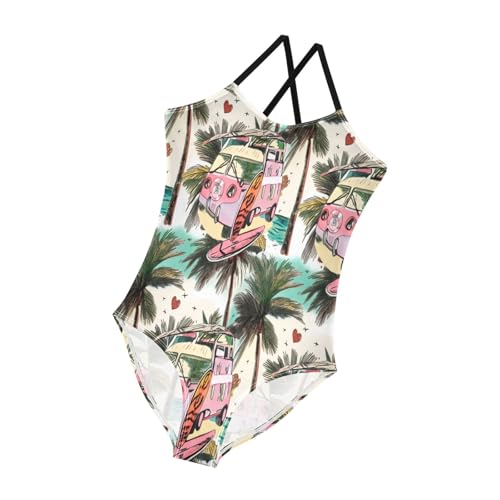 Girl Bathing Suits Beach Apparel 3-10 Y with Adjustable Shoulder Strap, Vintage Pink Van Surfboard
