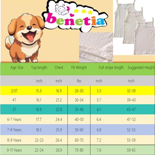 Fabric type: 100% CottonCare instructions: Machine WashOrigin: ImportedClosure type: Pull On100% combed cotton, benetia girls tank top material is very soft and comfy,skin-friendly, and breathable.sweat-absorbing,stretchable and durabilityExtremely well made for girls 2t 3t 4t 5t 6t 7t 8t Years old Toddler Baby ,each size Undershirts have plenty of room to grow intoCute Prints with Satin Bow,and the color is nice ,3 pieces a bag, packaged securely and we offer nice series Kids undies undershirts ,stunning and adorable print design,update new colors regularEasy matching colors: all are easymatching style, can be matched with various kinds of outfits, skirts, dresses, T-shirts and even uniform, style of classic and simple clothes ,exercises, sports, gymnastics and also fit for dance BalletStrap design: sleeveless dance tank top make hands flexible to usedesignation of strap hanging round your shoulder gives convenience of fixing, the strap will not easy to slip when one is wearing itMachine wash, easy to wash.,after washing ,this kid toddler girls underwear,no No pilling Perfect for everyday use. superior materials and excellent craftsmanship ensure long-lasting durability.