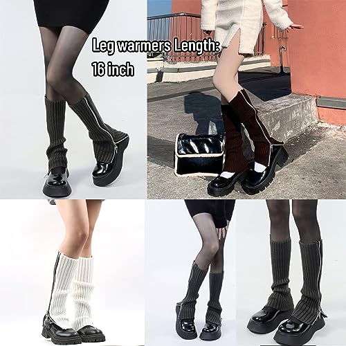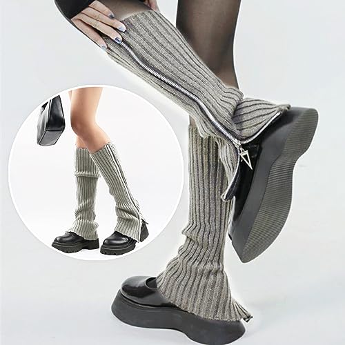 Grunge Leg Warmers Socks Fairy Grunge Cloth Socks High Knee Long Boot Knit Stack Zipper Socks for Women Girls Y2K