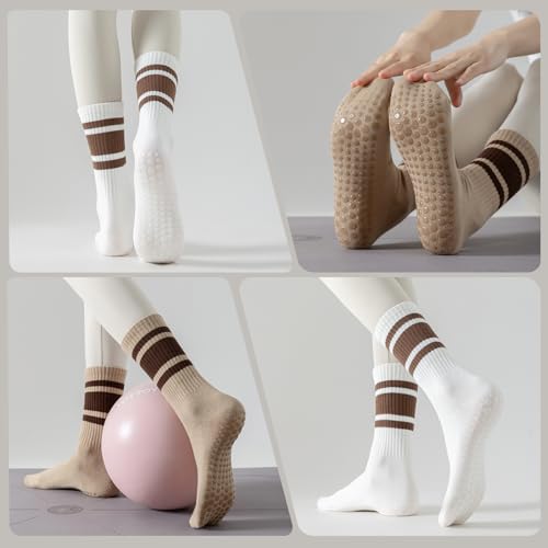 Pilates Socks with Grips for Women, 3 Pairs Womens Non Slip Grippy Yoga Ballet Barre Gym Athletic Socks
