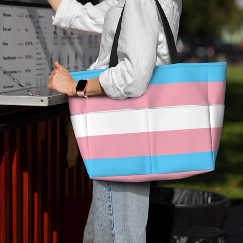 Transgender Pride Flag Beach Bag Women Tote Bag Pool Bag With Zipper For Gym Grocery Travel With Wet Pocket