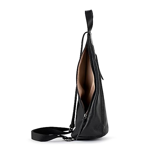 sophisticated & PRACTICAL: Upgrade your go-to travel tote with the Sak Geo Sling backpack. One comfy shoulder strap slings it over your shoulder or across your body for easy carryingPERFECT FOR EVERYDAY TRAVEL: Features a main zipper closure, single backpack strap, one side zipper pocket, one back slip pocket, and an interior with a back wall zipper pocket and a front wall multi-functional pocketsPREMIUM ARTISANAL LEATHER: Bag exterior is leather sourced from a gold-rated certified tannery that complies with environmental sourcing processes & sustainable water usage. Bag interior is PETA-approved & Vegan Certified Repreve LiningDIMENSIONS & CARE: Bag dimensions are 9 L x 5.5 W x 16 H. For care, clean with a water-based leather cleaner and use a protective spray to protect the leather surfacesTHE SAK: We've always been about more than bags, capturing our love of hand-crafted, textural designs. We are B Corp certified, given to companies that meet the highest standards in creating a positive social & environmental impact Perfect for everyday use. premium materials and excellent craftsmanship ensure long-lasting durability.