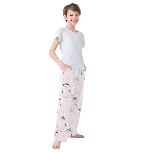 Cat and Heart Boys Pants Boys Athletic Pants Long Pant for Boywith Pockets Wide-Leg Size 6-14Y