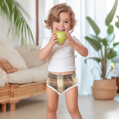 Brown Tartan Plaid Breathable Girls' Panties Organic Underwear for Kid in Sizes 2T,3T, 4T, 5T, 6Y and 8Y