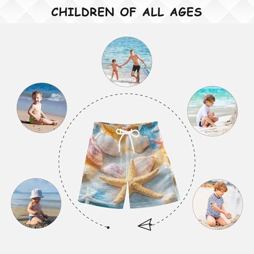 More information about DOMIKING Seashells Starfish Sand Beige Boys' Pull On Swim Trunks rapid Dry Boardshorts with Mesh Lining for Kids Boys M