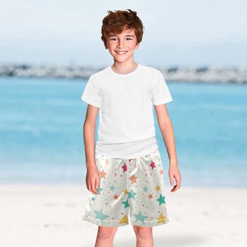 OREZI Boys Swim Trunk Shorts Colorful Stars Doodle Bathing Suit for Kids Teens