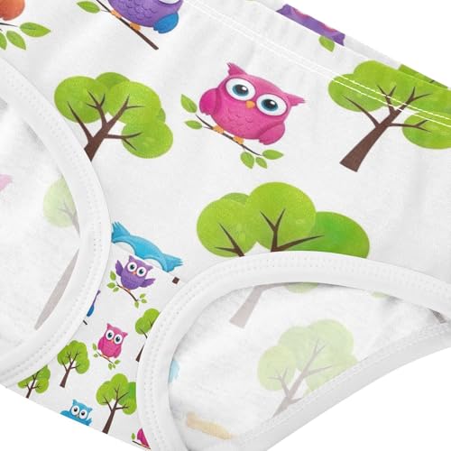 Toddler Briefs, Cute Colorful Cartoon Owls Girls' Cotton Brief Underwear, 2–8 Years