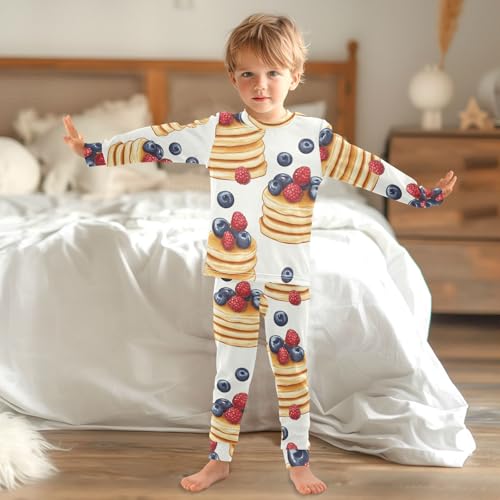 Pajama Sets Long Sleeve Pancakes with Berries Pattern gentle Comfy Sleepwear 2 Piece PJS 3-8T