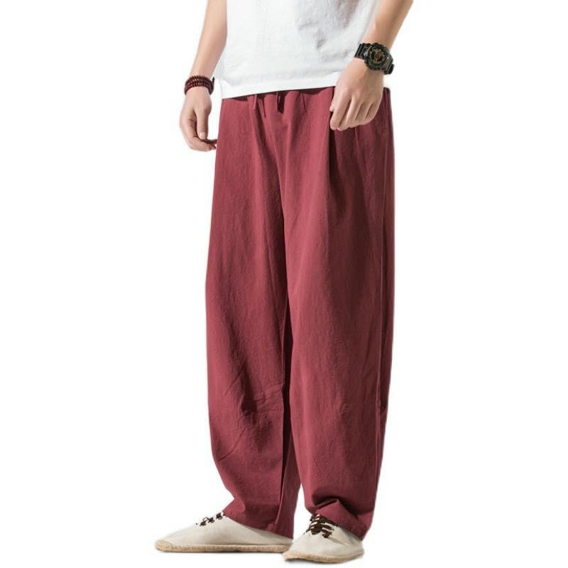 Men's Summer Chinese Style Tang Suit Cotton Linen Loose Lantern Straight Casual Long Pants