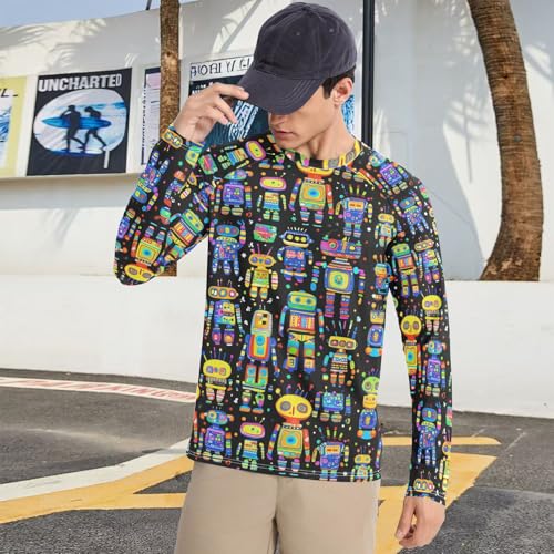 Bolaz Mens UV Protection Shirts Rash Guard Long Sleeve UPF 50+ Colorful Robots speedy Dry S