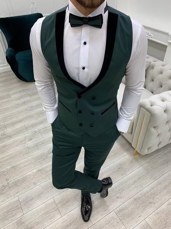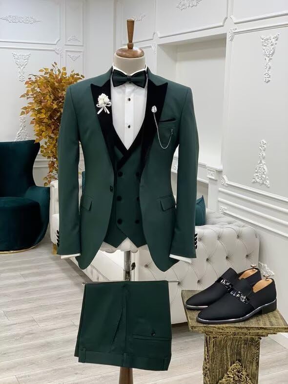 Wangyue Men's 3 Piece Tuxedo Suit Slim Fit Double Breasted Suit Men Wedding Party Prom Suits Sets