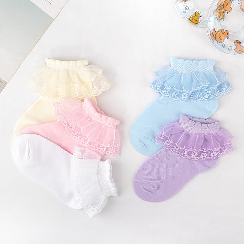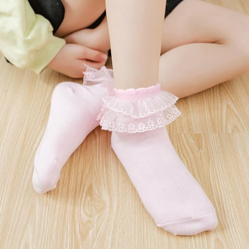 Meeshine 5 Pack Toddler Baby Girls Ruffle Lace Socks Princess Frilly Trim gentle Cotton Knit Ankle Socks for 2-9T Kids