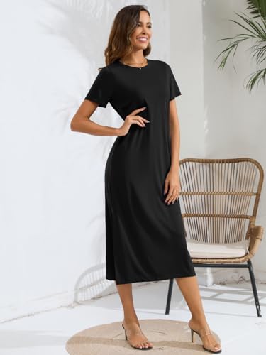 Naggoo Women's Short Sleeve Split Maxi Dress Casual Plain Tie Dye Print Tshirt Long Dresses with Pockets