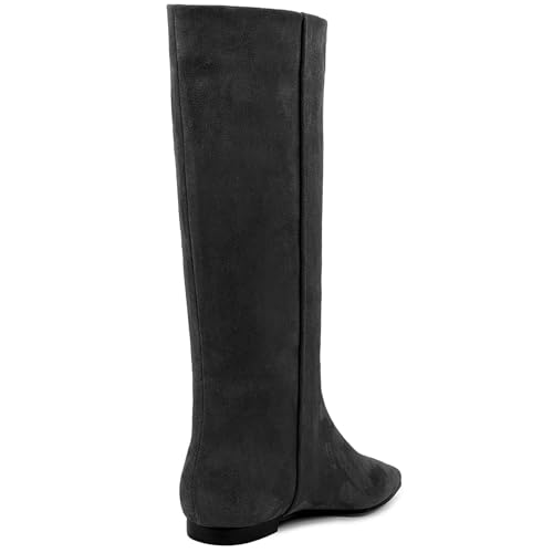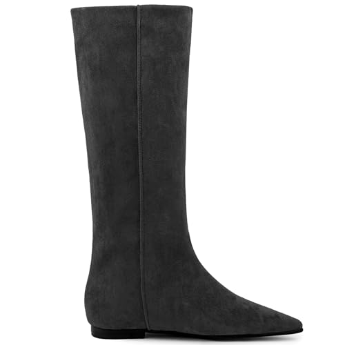 Sole material: RubberOuter material: SuedeClosure type: Pull-On0.39 INCHES FLATS HEELS: Heel measures 0.39 inches.Standard size both in length and width, available size: 5/6/7/8/8.5/9/9.5/10/10.5/11. A pair of such classy knee high boots with suitable size can make you feel more sexy and confident.BOOTS FOR WOMEN NO HEEL: Suede pointed toe flat boots, featuring a knee high height. flat low heels make these knee high boots are present-day and comfortable.SUEDE BOOTS FOR WOMEN: These knee high boots for women are crafted from suede material, breathable lining and padded insole. The pull-on construction is easy to take on/off.FIT VARIOUS USES: Our suede knee high fall boots are perfect for dates, parties, travel, work or casual wear. Suitable for fall/winter/spring/summer.NOTE:The shoe size chart is shown on the product page. Please find the detailed size information the descriptions to select a suitable size. Perfect for everyday use. superior materials and excellent craftsmanship ensure long-lasting durability.