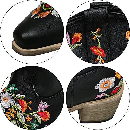 More information about gloryinterest Cowboy Boots for Women Ankle Cowgirl Boots Western Flower Embroidered Square Toe Chunky Heel Stitched Retro Black Brown Red Blue Yellow Purple US5.5-10.5