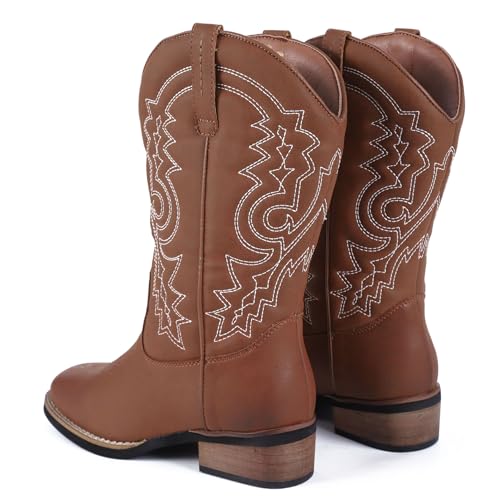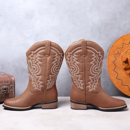 • [ Non-slip TPR Outsole ] Equipped with a sturdy outsole and the traditional low western heel, these black mid calf cowboy boots offer remarkable traction and stability, flawless for navigating diffenent terrains.