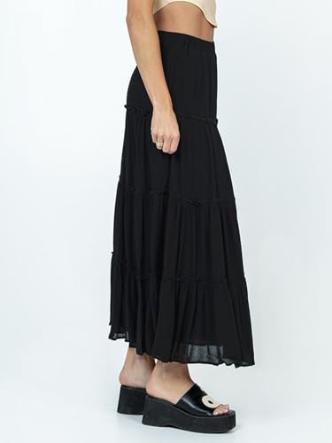 Women Summer Tiered Maxi Skirt Elastic High Waist A Line Boho Beach Dress Flowy Big Swing Long Skirts
