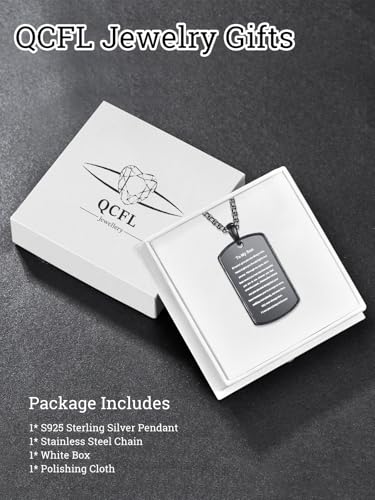 Material: Sterling SilverMetal type: Sterling SilverClasp type: LobsterChain type: RoloGem type: No GemstoneItem type name: Pendant NecklacesTo My Son - If I could give you one thing in life, I would give you the ability to see yourself through my eyes, only then would you realize how special you are to me. Whenever you feel overwhelmed... Remember whose son you are and straighten your crown. Always keep me in your heart because you're always in mine. nothing and nobody, not even time, will ever change that. I love you always & forever.Silver Dog Tag Necklace - This dog tag pendent necklace for men is made of high-quality sterling silver, no nickel, no lead, no cadmium, never get tarnished or change color, ensuring that your son can cherish it for years.distinctive Design - Dog tag pendant length: 1.1(28mm). Son necklace chain length: 22+2 (rolo chain), with flexible lobster clasp. The pendant is coated with an black gold plated process throughout and is hand engraved to maximize the detail.Gift for Son - Well packaged by QCFL gift box and a polishing cloth inside. Birthday, Christmas or Just a surprise for your son. Dog tag jewelry is an excellent choice for surprises.Promise - If you have any questions about our dog tag with cross necklace, please contact us directly. We are happy to assist you and will reply as soon as possible. Perfect for everyday use. premium materials and excellent craftsmanship ensure long-lasting durability.