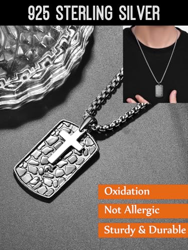 Dog Tag Cross Necklaces for Men, 925 Sterling Silver To My Dad/Husband/Son Pendant Necklace, Christmas Birthday Jewelry Gifts for Husband Father Son