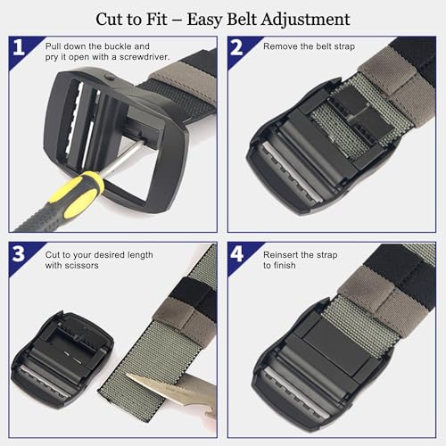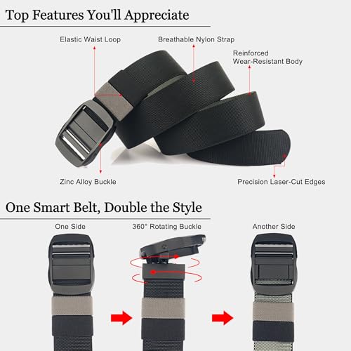 Reversible Nylon Elastic Ratchet Belt Men, Heavy Duty 2 in 1 Webbing 360 Degree Rotating Metal Buckle