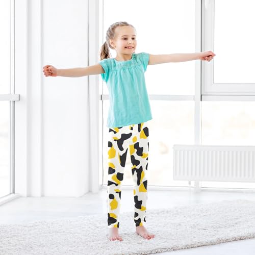 Cow Skin Print Yellow Black Girls Casual Leggings for Kids Printed Long Pant Bottoms Stretch and gentle