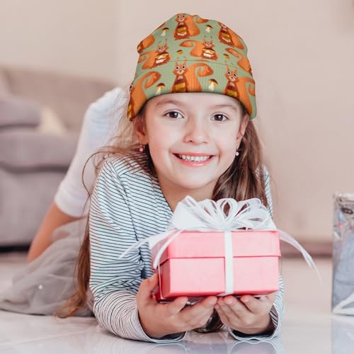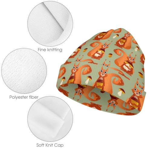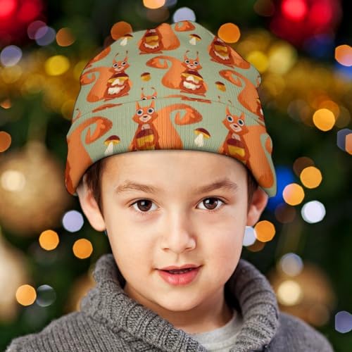 sizzling ! Cute Chipmunk and Mushroom Pattern Kids Beanie Hat for for Girls Boys Children Cap Winter Knitted Chemo Cancer Headwear Accessories Gifts Decoration Black