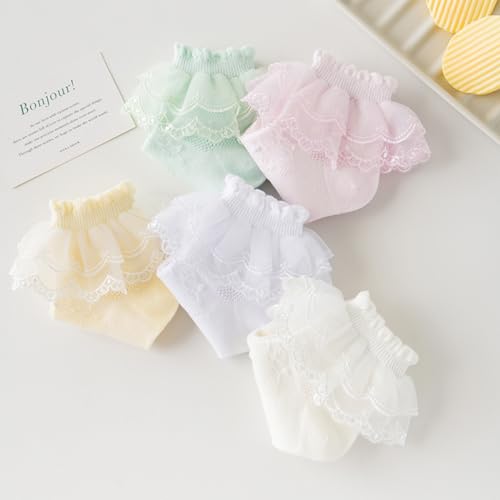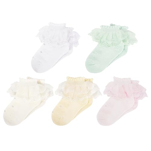 Meeshine 5 Pairs Baby Girls Eyelet Frilly Lace Socks Princess Ruffle Cotton Ankle Dress Thin Socks for 1-9T Toddler Kids