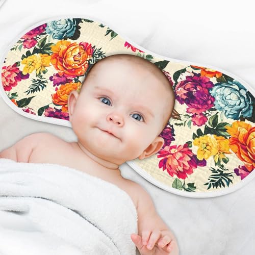 MCHIVER Floral Peony Blossom Beige Baby Burp Cloths Cotton Washcloths gentle Absorbent Burping Rags for Baby Boys Girl Burpy Cloth Bib 4 Pack