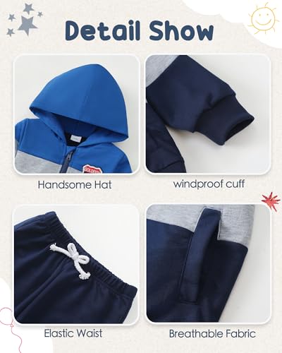 NZRVAWS Boy Clothes Kids Boy's Jacket Color Block Fall Winter School Outfits Zip up Sweatshirt Hoodie Pants Set 3-8T