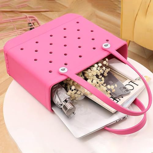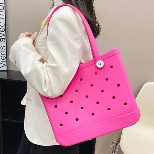 Rubber Tote Beach Bag for Women, Waterproof Travel Bags, Washable Open Handbag for Sports Beach Boat Outdoor (Rose Red,Medium)