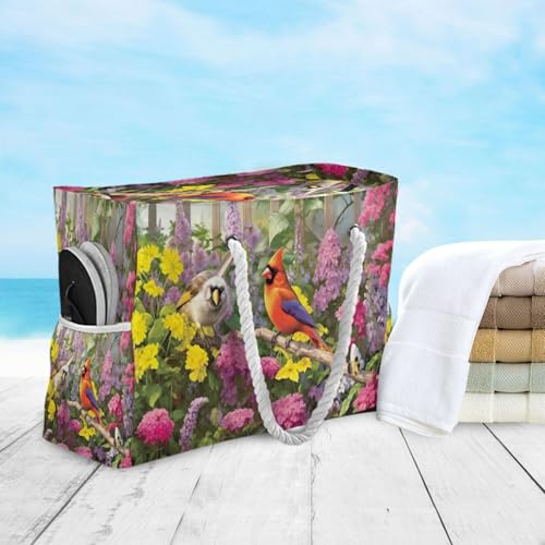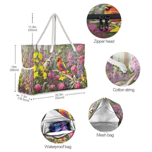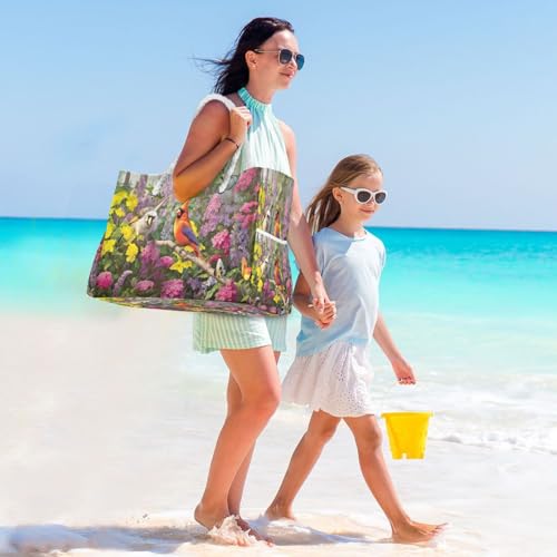 Colorful Bird Garden Beach Bag with Top Zipper Closure, Waterproof Pool Bag, Large Beach Tote for Women#123