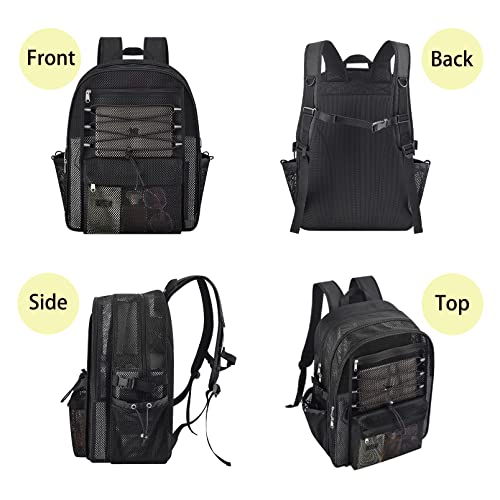 More information about Mesh Backpack Heavy Duty for School, 35L Extra Large Mesh Bookbag for Adults, See Through Mesh Black School Bag with Laptop Pocket for Work Swimming Beach Fitness Sport