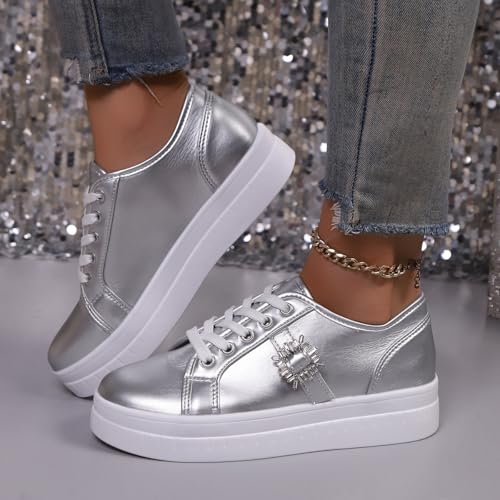 Sole material: RubberOuter material: Polyurethane (PU)Closure type: Pull-OnWater resistance level: WaterproofSTYLISH DESIGN: Black leather platform sneakers featuring an elegant crystal buckle accent and classic lace-up closure for a fashionable contemporary lookPLATFORM SOLE: Chunky platform design provides extra height while maintaining stability and comfort for all-day wearQUALITY MATERIALS: Crafted with durable black leather upper, metal eyelets for the laces, and a sturdy rubber platform soleVERSATILE FASHION: Perfect for casual outfits, these sneakers pair well with jeans, dresses, or skirts for a trendy street-style lookSECURE FIT: Traditional lace-up system with multiple eyelets ensures adjustable and customizable fit for maximum comfort Perfect for everyday use. premium materials and excellent craftsmanship ensure long-lasting durability.