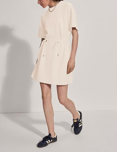 MISSACTIVER Women Summer Mini Dress Crew Neck Short Sleeve T Shirt Dress Casual Elastic Waist Short Dresses with Pockets