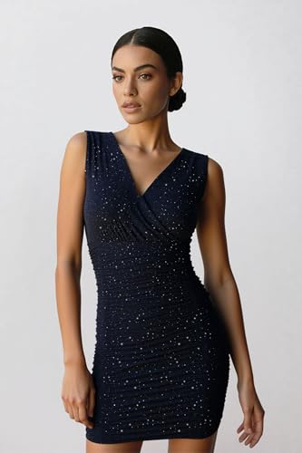 sizzling ! Women’s Sequin Sleeveless V Neck Short Dress Elegant Glitter Bodycon Ruched Party Cocktail Mini Dress