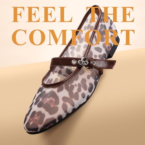 Leopard Flats for Women Mesh Ballet Flats Mary Jane Animal Print Shoes Slip On Casual Breathable Ballerina Flats
