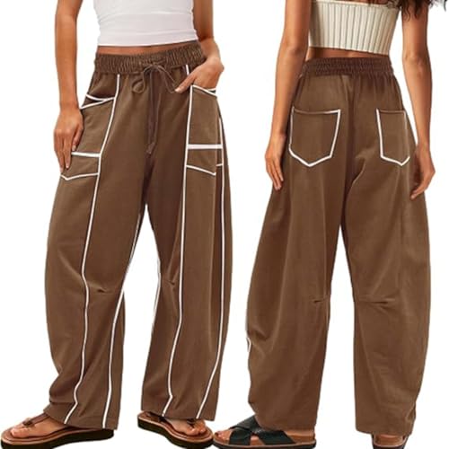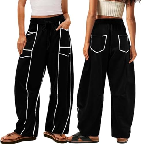 Commendize Womens Baggy Barrel Pants Wide Leg Lounge Drawstring Sweatpants with Pockets, Summer Wide Leg Casual Pants