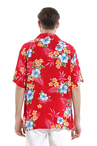 Matchable Couple Hawaiian Luau Shirt or Wide Legged Pants in Hibiscus Red