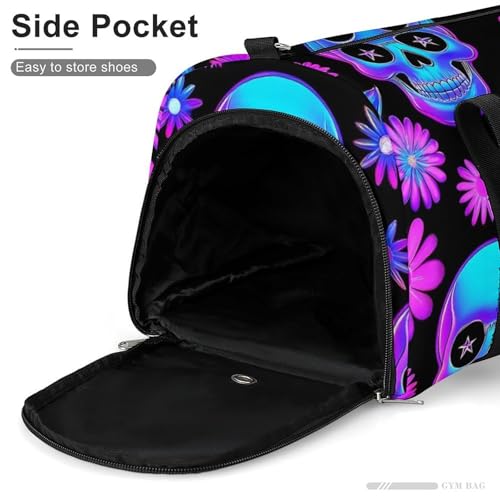 sizzling ! Men's Large Sport Duffle Bag Travel Weekender Bags Beach Overnight Luggage Bag Neon Purple Flowers Floral Skull