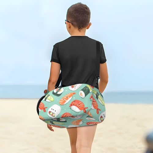 sizzling ! Sushi Pattern Green Duffle Bag for Girl, Sports Duffle Gym Bags with Shoe Compartment, Personalized Overnight Bag Travel Weekender for Kids
