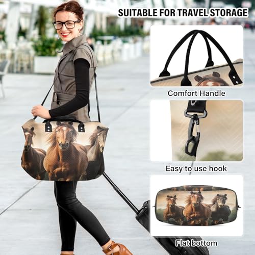 Weekender Bags for Women,Foldable Horse Travel Duffel Bag with Trolley Sleeve Travel Tote Gym Bag with Toiletry Bag