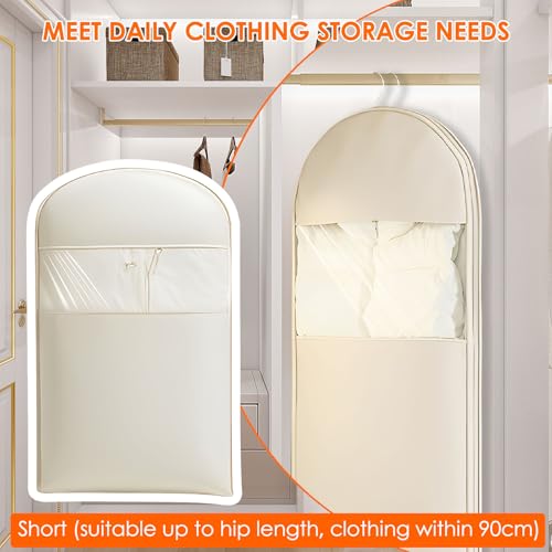 Garment Bag Space Saving Hanging Garment Bag with Self Compression Zipper for Closet Organization Breathable Suit Dress Bags Down Jacket Protector for Storage(Beige-Short)