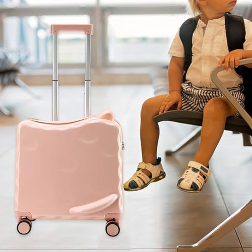 【Materials】: Constructed from PP PC alloy, this suitcase offers great durability and resistance to impact, ensuring it withstands the rigors of travel while keeping your child's belongings safe, making it both strong and reliable for everyday use【Smooth Mobility Features】: Equipped with smooth multi directional wheels and an adjustable alloy pull rod, this Trolley Luggage provides effortless maneuverability. The pull rod features multiple adjustment levels to ensure easy handling for children. Equipped with combination lock for added security【Ideal Gift for Special Occasions】: This travel luggage is ideal as a gift for Children's Day, holidays, or family trip, this playful design is sure to be loved by kids everywhere【Comfortable Ride on Experiences】: Designed with ergonomic seating contours and a comfortable handle, this children's suitcase doubles as a ride on toy that kids will love, its one-of-a-kind ear shape adds a playful touch while ensuring comfort during use【Compact and Travel Friendly Design】: This 18 inch ride on children's suitcase is great for travel, helps keep your child's belongings organized and ready for any adventure or trip. With dimensions of 48 cm x 40 cm x 23 cm/18.90 inch x 15.75 inch x 9.06 inch Perfect for everyday use. superior materials and excellent craftsmanship ensure long-lasting durability.