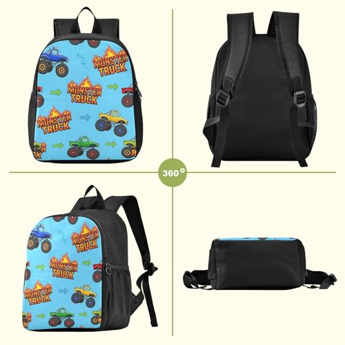 DOMIKING Monster Trucks Blue Kids Backpack for Boys Girls Elementary Kindergarten School Backpack for Kids Toddler School Bag Bookbag Age 3-6